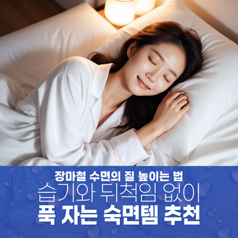지금부터 전문가들이 추천하는 장마철 수면관리 방법과 숙면템을 소개합니다.