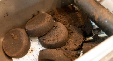 - 커피 찌꺼기를 햇볕에 완전히 말립니다.