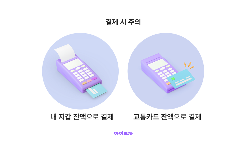 결제 방식에 따라 차감되는 잔액이 다르니 주의하세요.